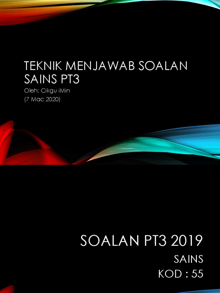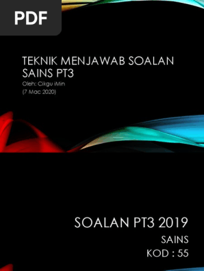 Save TEKNIK MENJAWAB SOALAN SEJARAH PT3 2019pptx For Later. TEKNIK MENJAWAB SAINS SPM. Soalan pt3 sains latihan 1.